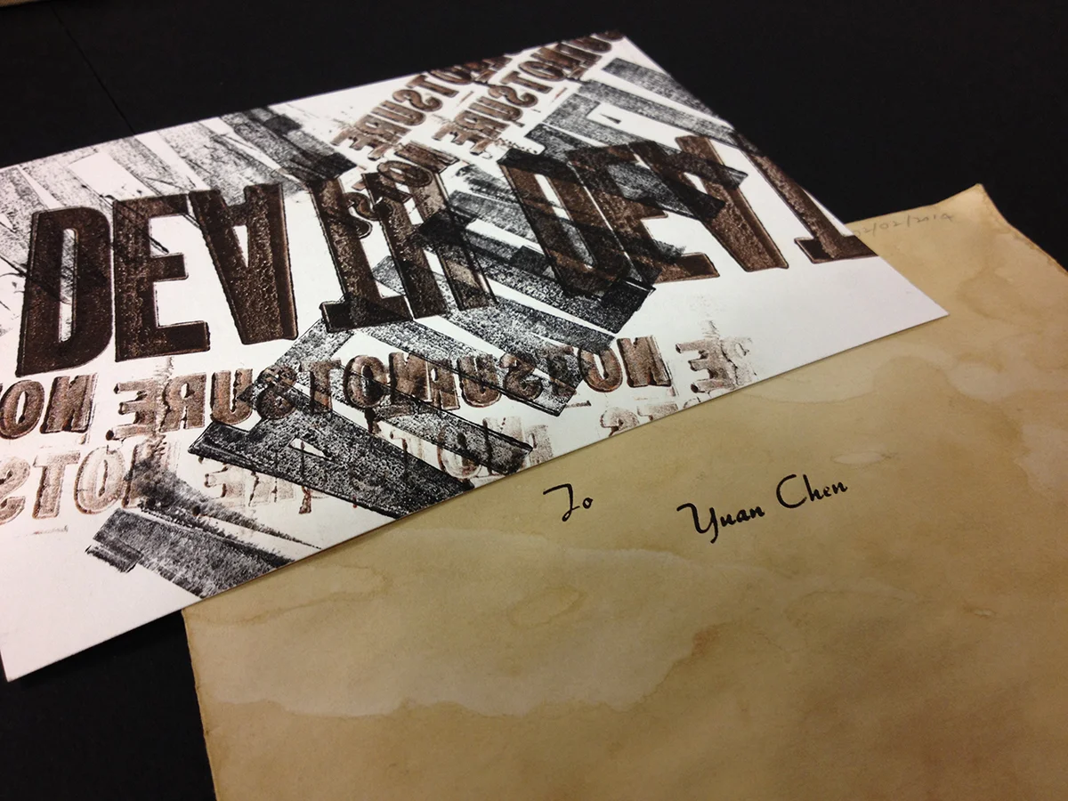 Medium: Letterpress, coffee, paper